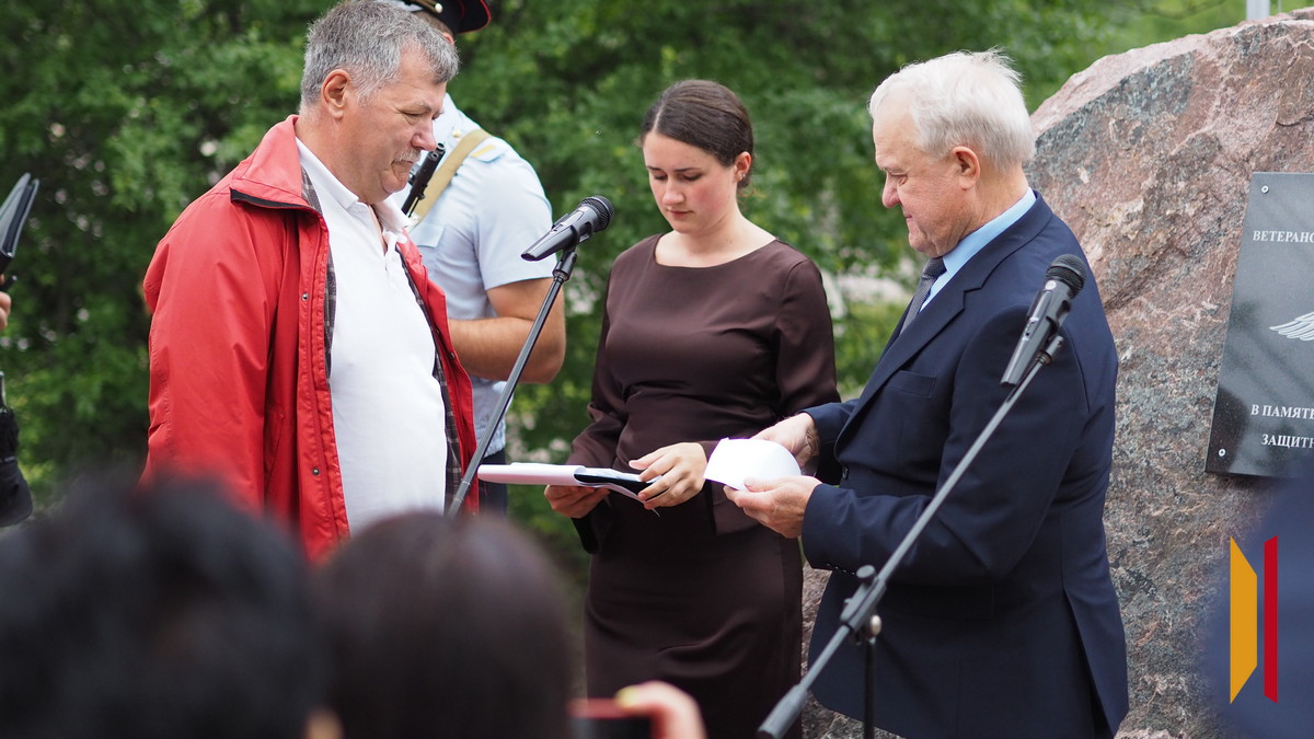 Право открытия памятного знака предоставили подполковнику полиции Владимиру Калашникову и полковнику милиции в отставке Александру Поповскому.