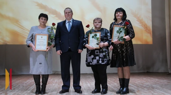 Глава Подгоренского района Максим Данилов вручил передовикам отрасли благодарности Министерства сельского хозяйства РФ: нормировщице Любови Ремезовой, повару Ольге Черниковой, экономисту Валентине Донченко, водителю Денису Шиловскому.