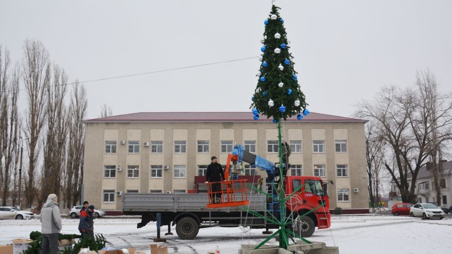 В Поворино, на площади Комсомольская, рабочие из Коломны начали устанавливать главную новогоднюю ёлку района в среду, 17 декабря.