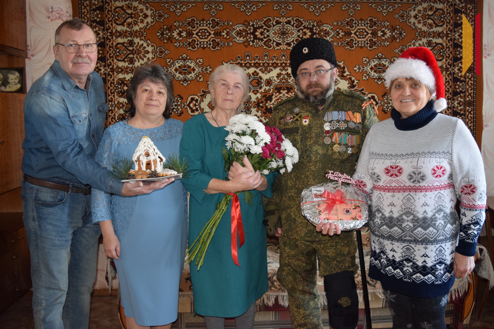 В день рождения Анна Афанасьевна не осталась одна: ее приехали поздравить участники волонтерской группы «ZOV РАМОНЬ» – руководитель Любовь Кузнецова, Владимир и Лариса Бобылевы, а также ветеран СВО Роман Костюков. Гости привезли подарки, цветы и праздничный пирог, выразив благодарность имениннице за вклад в общее дело. Хозяйка предложила чай с пирогом, но мы попросили ее присесть и рассказать о жизни, о том, что побудило помочь нашим военнослужащим в зоне СВО.