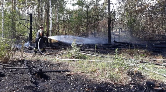 Загорелась сухая трава. Сообщение о возгорании поступило в пожарную часть в 14:15.
