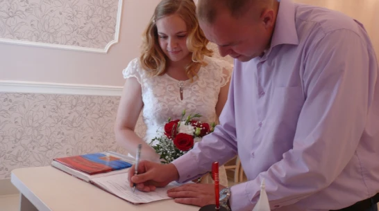 В торжественной обстановке ребята узаконили свои отношения, по традиции обменялись кольцами и поцелуем.