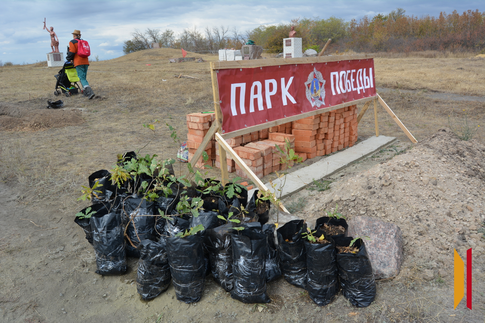 Парку Победы уже 11 лет. Заложили его к 70-летию Великой Победы. Сажали разные деревья, но прижились единицы. Дело в том, что на этом месте раньше была машинно-тракторная станция, стояла сельхозтехника, поэтому земля здесь скудная. Вдобавок ко всему на возвышенности дуют сильные ветра, поэтому почва сухая и плотная, как асфальт. Чтобы деревья максимально прижились, еще один тосовец «Плодотворного содружества», местный житель Георгий Игин решил проложить под каждое дерево трубы и организовать капельный полив.