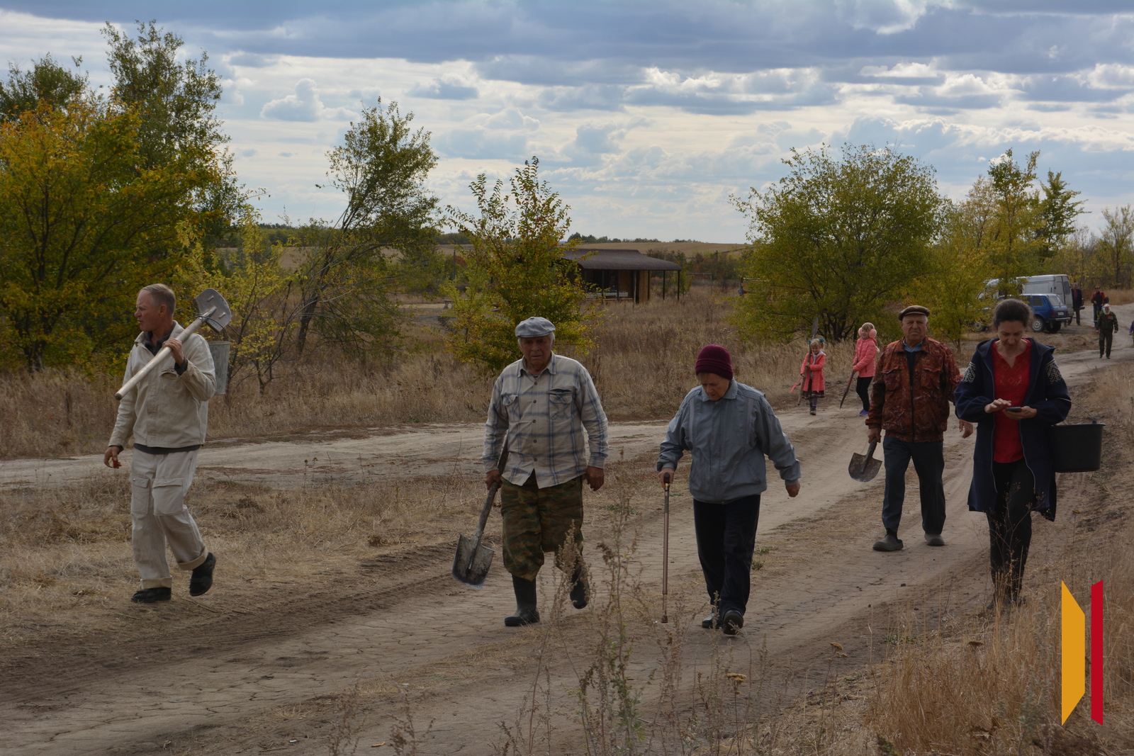 Когда все деревья были посажены и таблички установлены, хуторяне не стали расходиться по домам. Организовали под новым навесом скатерть-самобранку и угостили всех участвовавших в посадке жителей чаем с пирогами.