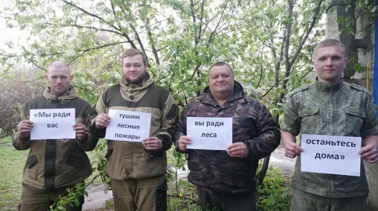 Лесники разместили в соцсетях фотографии с призывом: «Мы ради вас тушим лесные пожары, вы ради нас останьтесь дома».