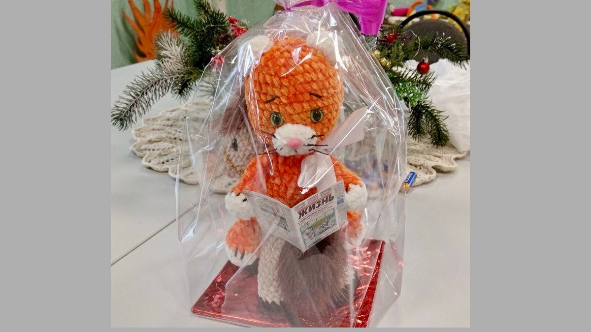 Семилукские журналисты подарили Владимиру Касютину символ районки – вязаного рыжего кота верхом на лошади. В лапах усатый-полосатый держит свежий номер районной газеты. Презент изготовили специально по случаю приезда московского гостя мастерицы из поселка Стрелица Наталья Горожанина и Наталья Котлярова.