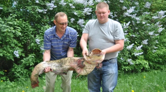- Сом сопротивлялся так, что чуть из лодки меня не вытащил, - рассказывает он. – Даже обломил кончик крепкого спиннинга. Когда из воды показалась огромная усатая голова, я подцепил рыбину подсаком.