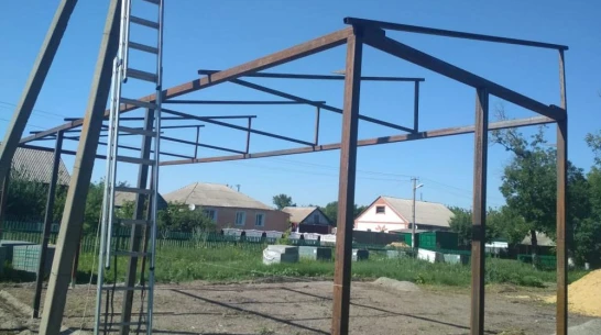 На улице Победы уже установили металлический каркас. На следующих выходных местные активисты Игорь Афанасьев, Виктор Хромов и Владимир Фролов планируют обшить металлопрофилем стены и сделать крышу.