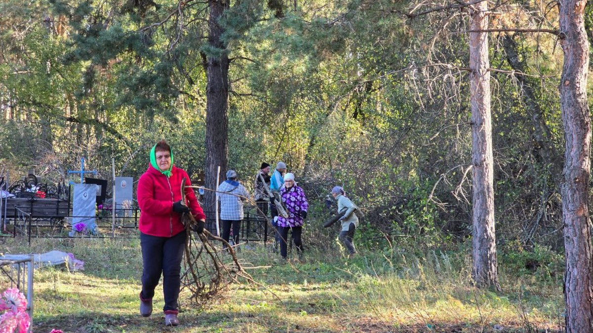 Также общественники облагородили братскую могилу неизвестным солдатам, погибшим в годы ВОВ, и взялись за уборку всего кладбища.