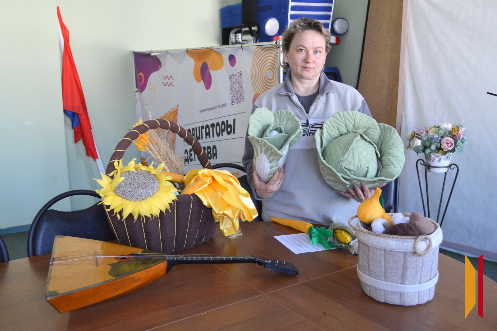 Ко Дню сельского хозяйства работники культуры задумали создать фотозону для тружеников полей и животноводов. В фойе районного Дома культуры их ждал тканевый трактор в окружении пошитых из материалов и синтепона овощей.