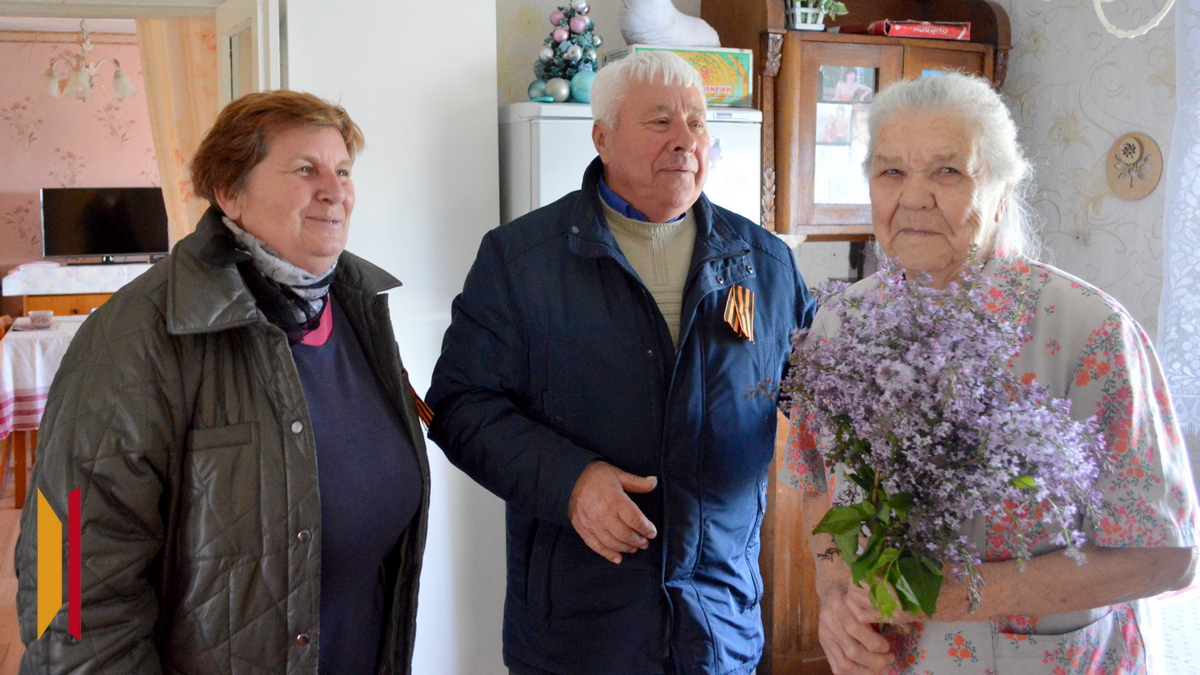 Одной из первых букет вручили 95-летней Александре Панферовой. Во время Великой Отечественной войны женщина трудилась с мамой в колхозе. Всегда участвовала в уборке урожая. С полей сражений не вернулись ее брат Николай и отец Иван Тепикин.