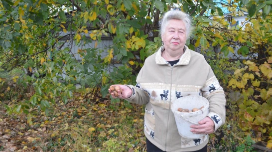 – В этот дом переехали в 1972 году. На приусадебном участке сначала посадила яблони, вишни, смородину и клубнику. От родственников на Украине привезла саженец абрикоса 28 лет назад. Это сейчас у сельчан есть самые разные южные деревья. Тогда я была одной из первых, у кого на участке рос абрикос. Посадить орехи посоветовали родственники. Купила плоды в магазине и осенью высадила два. Радовалась успеху, когда появились ростки. Но холодные зимы долго не давали им как следует вырасти. Несколько раз побеги вымерзали, но от корней появлялись новые. Лет 15 назад деревья пошли в рост. Но орехи полностью не созревали. В этом году впервые такой урожай, – рассказала Людмила Игнатьева.