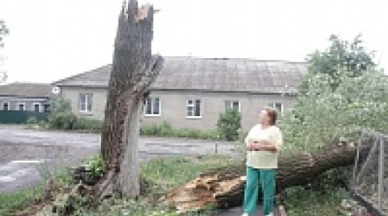 Вчера, 9 июня, в Верхнехавском районе затянувшаяся жара была прервана ливнем с градом, сопровождавшимся сильными порывами ветра. Налетевший ветер повалил деревья во дворах жилых домов.