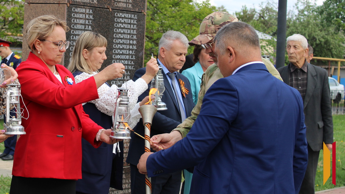 В этот же день в Верхнем Мамоне прошла церемония зажжения и передачи частицы Вечного огня во все села района. Право зажечь Вечный огонь у братского захоронения №84 предоставили ветерану СВО Сергею Олейникову. А в села района частицы огня доставили их главы.