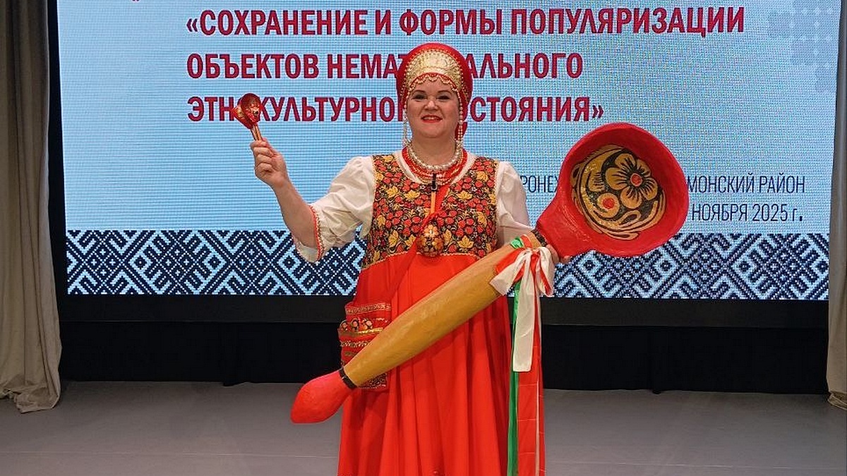 Верхнемамонская самодеятельная артистка Елена Чурсина выступила с ложкой весом 3 кг и длиной 130 см на концерте в рамках этнокультурного форума «Сохранение и формы популяризации объектов нематериального этнокультурного достояния» во вторник, 11 ноября. Об этом корреспонденту РИА «Воронеж» сообщила сама Елена Чурсина.