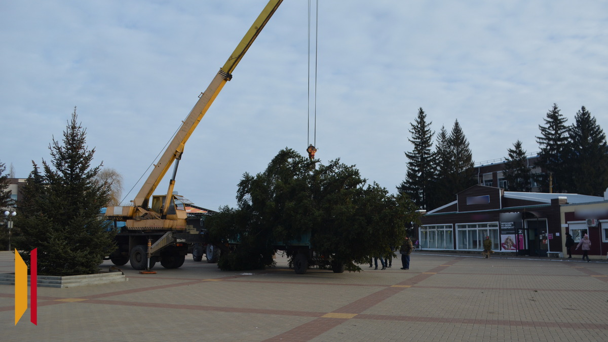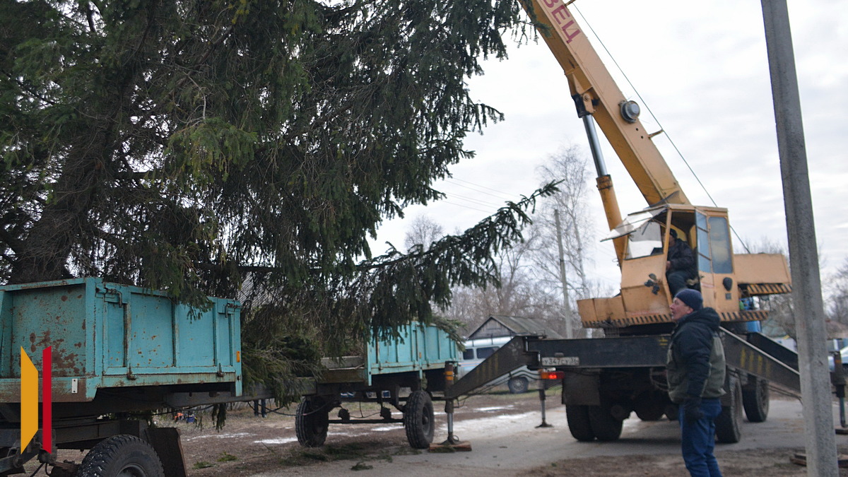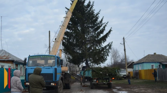 В селе Воробьевка на центральной площади установили главную новогоднюю ель в понедельник, 15 декабря. Дерево высотой более 15 м новгородского происхождения вырастили в селе Новотолучеево.