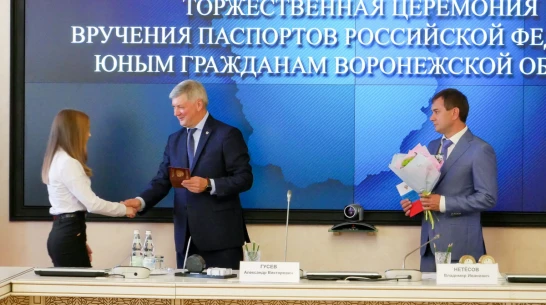Паспорта школьникам, достигшим 14-летия, в правительстве Воронежской области вручил врио губернатора Александр Гусев во вторник, 12 июня. Документы получили лучшие ученики школ – победители олимпиад, спортсмены и участники художественной самодеятельности.