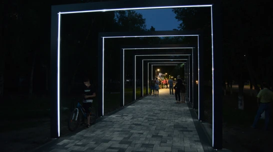 Работы по благоустройству еще не завершены, но уже отмечены неподобающие факты. Так, кто-то заехал на автомобиле на тротуар и припарковался в центре световых арок. Плитка, уложенная на дорожках, не предназначена для таких нагрузок, поэтому въезжать сюда на транспорте категорически запрещено.