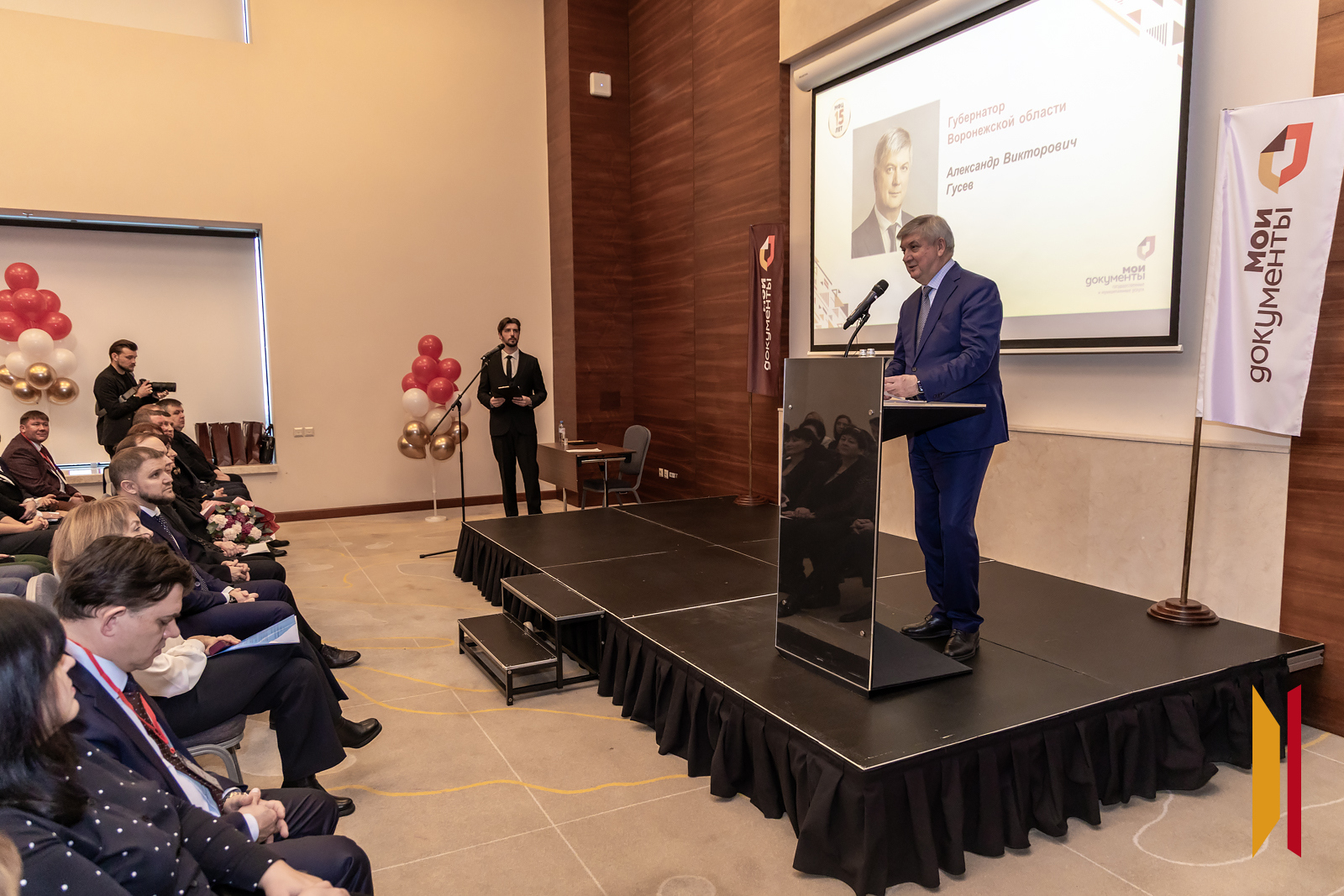 В среду, 10 декабря, губернатор Александр Гусев принял участие в работе пленарного заседания «МФЦ – 15 лет: достижения, вызовы и векторы роста», посвященного юбилею начала работы многофункциональных центров в Воронежской области. В заседании также участвовали заместитель председателя регионального правительства Артем Верховцев, директор центра развития МФЦ Фонда «Центр стратегических разработок» Наталья Яковлева, руководитель управления Росреестра по Воронежской области Елена Перегудова и другие.