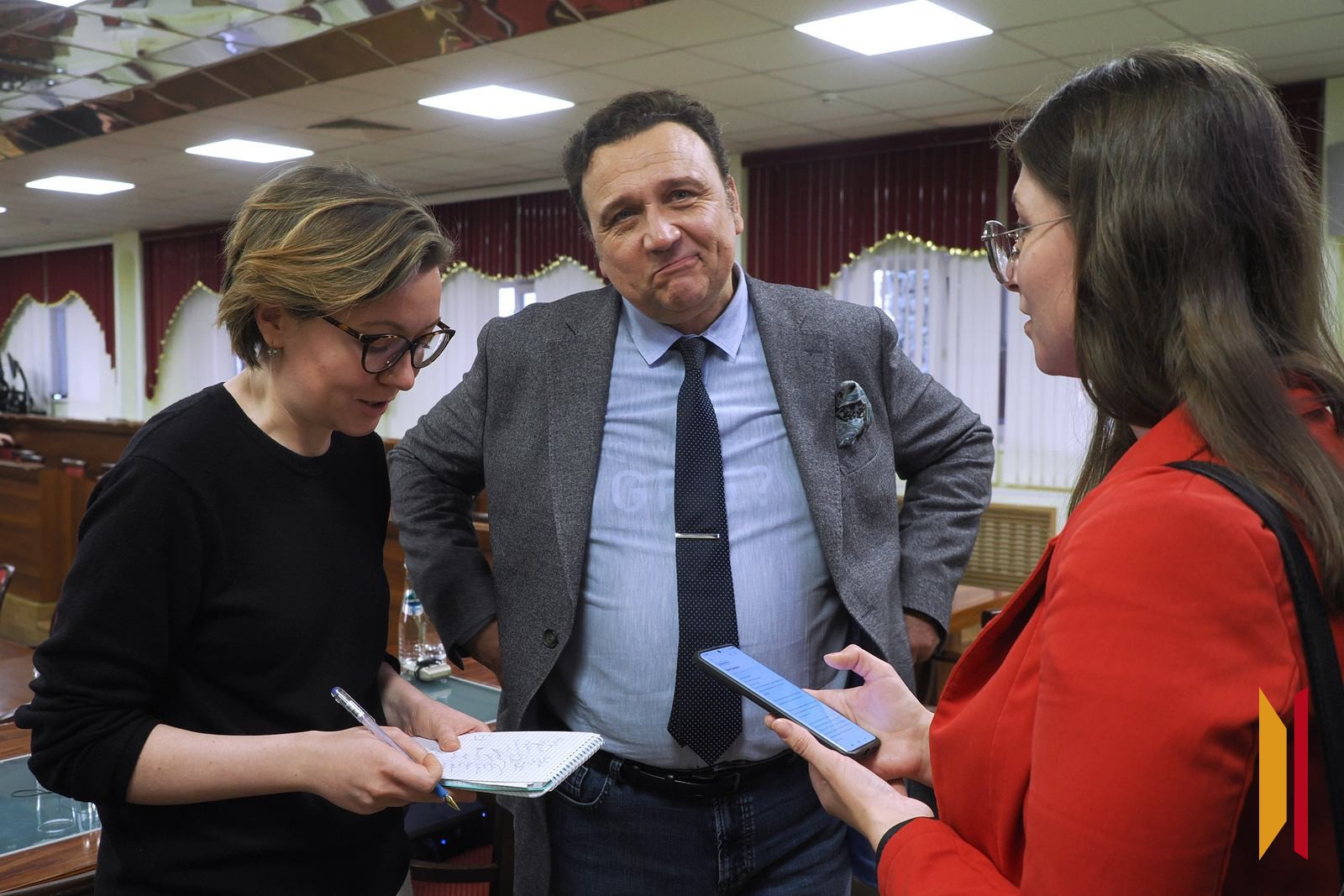 – Моя подруга, французский документалист, в 2016 году хотела снять документальный фильм о Донбассе. Она поехала туда, чтобы пообщаться с местным населением. Во Франции поначалу хорошо приняли идею и даже хотели картину отправить на фестиваль. Но потом подруга получила несколько звонков от серьезных людей, и съемки отменили. Она подверглась тотальной цензуре, – перевел переводчик гостя.