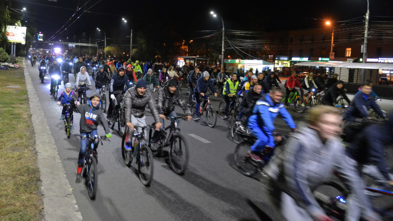 Восьмая «Велоночь» прошла в Воронеже в субботу, 28 сентября. По подсчетам организаторов, ежегодный велопарад собрал около 2 тыс. участников. Колонна велосипедистов проехала 10 км по центру Воронежа. Кто приехал на акцию, какие необычные велосипеды можно было встретить у «Юбилейного» и как прошел сам парад – в репортаже РИА «Воронеж».