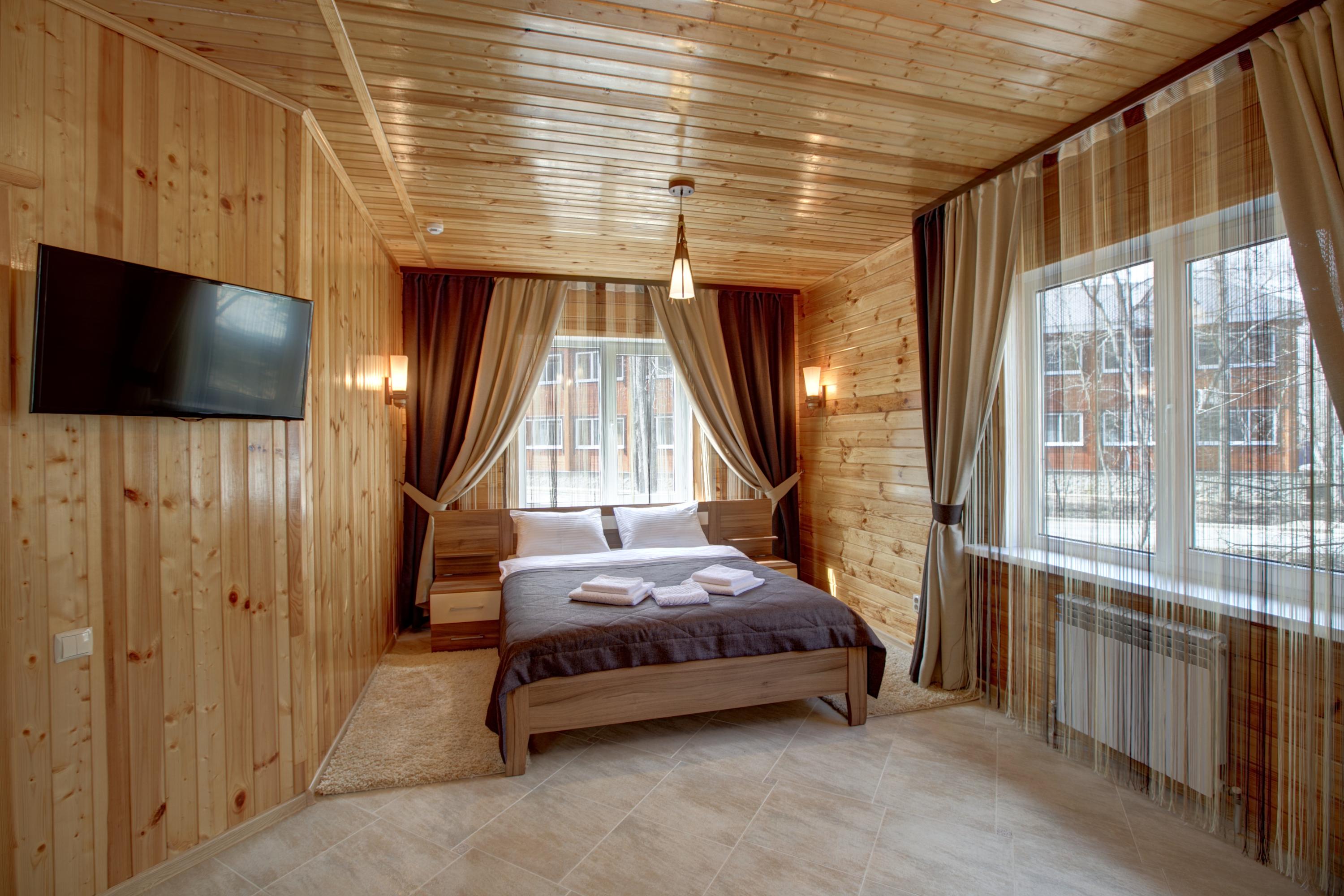В «ТайGA» есть возможность расселить всех участников мероприятия – формат размещения зависит от размера компании и численности участников корпоратива. Это могут быть номера в отеле, расположенном в самом центре парка, с удобными кроватями, гидромассажным душем, уютным интерьером. Или это может быть сруб – например, двухэтажный, пятикомнатный, с верандой. Сруб можно выбрать исходя из предпочтений – в удалении от центральных площадок парк-отеля, рядом с мангальной зоной или расположенный непосредственно у реки. Рядом с каждым домом – оборудованные беседки, удобные подходы и дорожки.