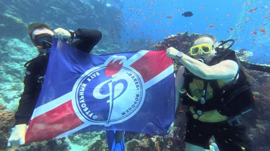 Болельщики воронежского «Факела» не расстаются с флагом любимого клуба даже на отдыхе на египетском курорте Шарм-эш-Шейх. Любители дайвинга взяли его с собой, спускаясь на дно Красного моря. Фото на глубине разместили в воронежских социальных сетях во вторник, 21 октября.