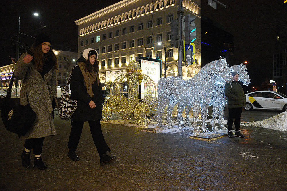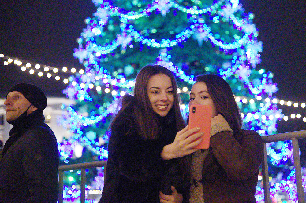 Наступление Нового года обычно знаменуется шумными сборищами коллег и друзей, детскими утренниками и прочими массовыми мероприятиями. Из-за пандемии в 2020 году от большинства из них пришлось отказаться. Но, как и раньше, люди покупают елки, готовят подарки близким, гуляют, фотографируются и катаются на коньках на главной площади. Атмосферу праздника дополняют декорации в центре города и тематическое оформление витрин. А необходимость носить маски не помеха праздничному настроению.