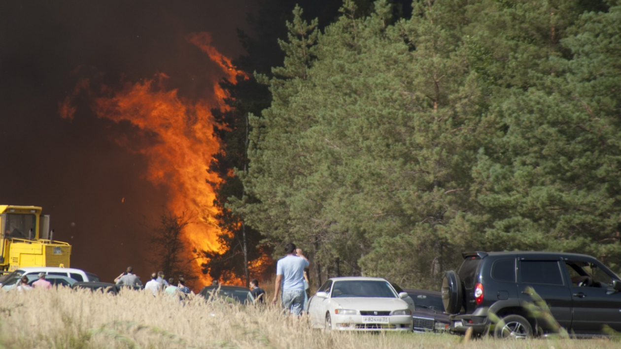Подстилка и лес в районе городской больницы на окраине Лисок в Воронежской области загорелись около 14:30 вторника, 22 августа.