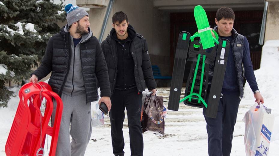 Футболисты разбились на две группы, и одна из них отправилась в Семилуки, другая навестила воспитанников воронежского приюта. После вручения подарков и общения спортсмены с детьми переместились на прилегающую центрам территорию, где воспитанники опробовали санки и ледянки на горке.