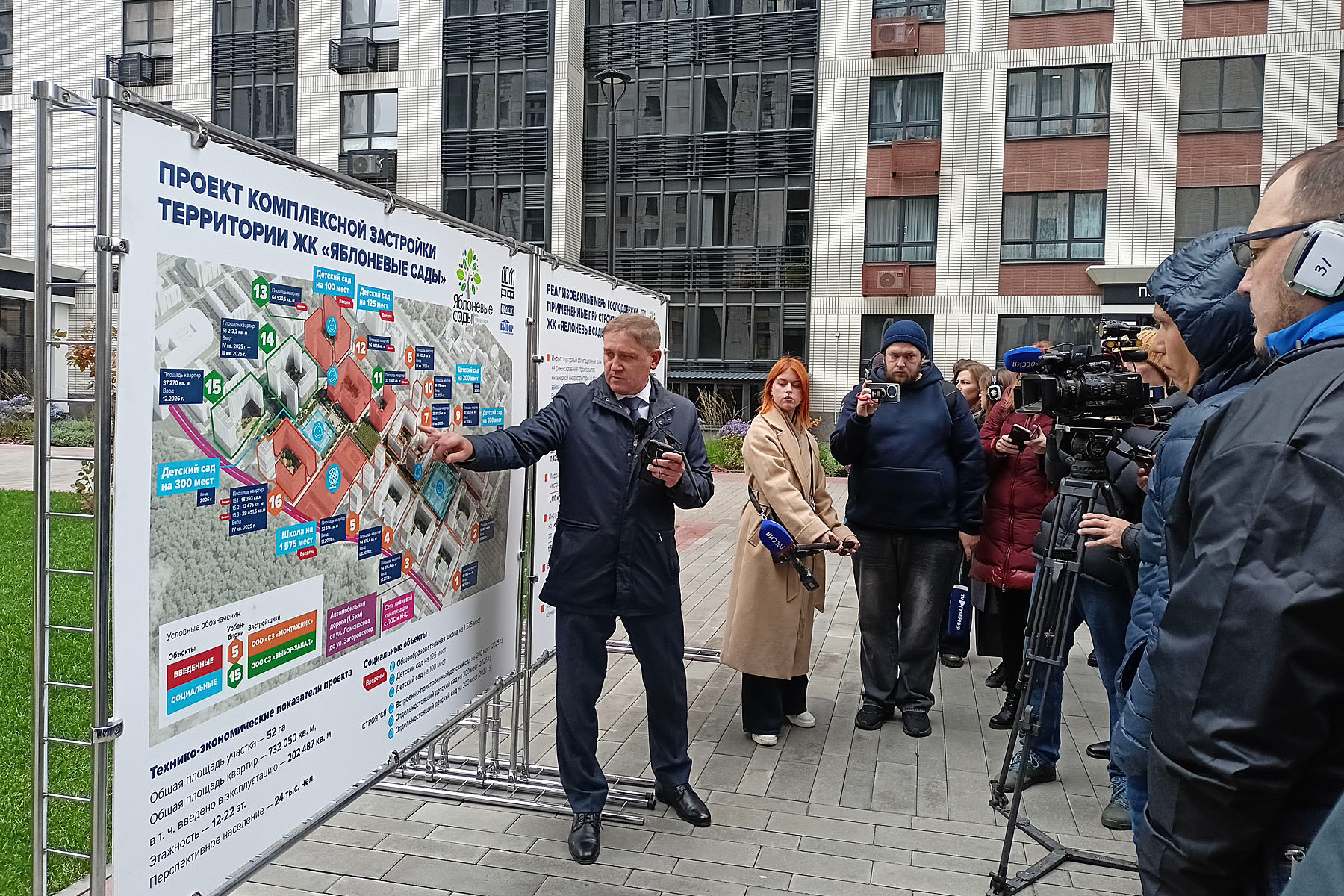 «Яблоневые сады» стали третьим совместным проектом ДСК и ДОМ.РФ и первым, реализуемым по модели, при которой корпорация получает 7% от объема построенного жилья и нежилых помещений.