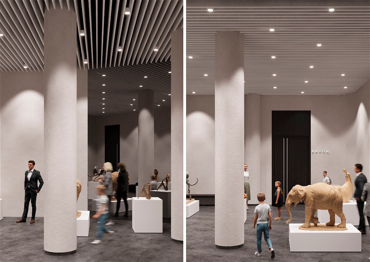Проектные решения позволят археологам продолжить исследование древнего костно-земляного жилища. Жители и гости Воронежской области смогут посмотреть на действующую археологическую площадку и понаблюдать за работой специалистов. Сам раскоп по периметру будет закрыт светопрозрачным ограждением, а для ученых оборудуют специальную лестницу. Часть напольного зала оборудуют из стекла, что позволит увидеть часть археологического памятника буквально под своими ногами. Расположение выставочных залов позволит организовать сквозной маршрут и выборочный осмотр экспозиций. На стенах появятся изогнутые экраны и интерактивные сенсорные панели с информацией об открытиях эпохи палеолита.
