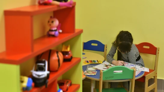 А чтобы отвлечь малышей от тревожных мыслей о походе к доктору, в зоне ожидания сделали детский уголок с игрушками, столиком для рисования и большой плазмой, по которой постоянно транслируются мультфильмы. Игрушки закупили такие, чтобы их легко можно было дезинфицировать. Здесь же есть кулер с водой.