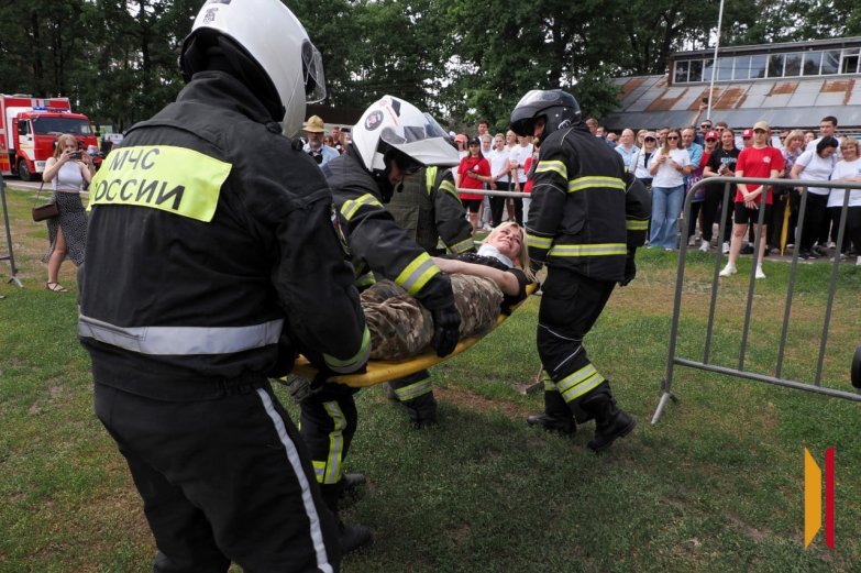 Началось все с показательных выступлений детской группы спасателей. По легенде, ребята играли в футбол, когда неожиданно прилетел дрон и сбросил бомбу. Мальчишкам и девчонкам в кратчайшие сроки необходимо было оказать первую помощь трем пострадавшим.