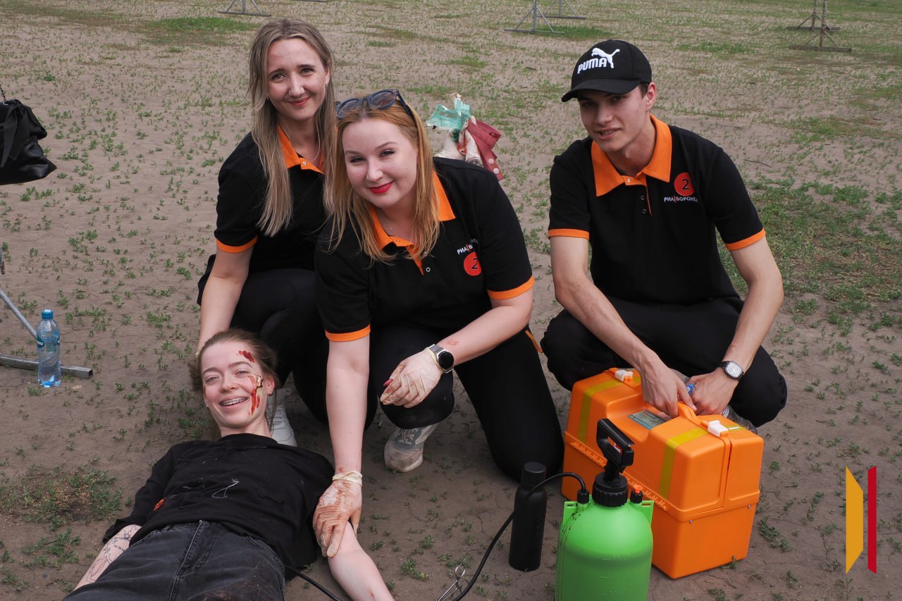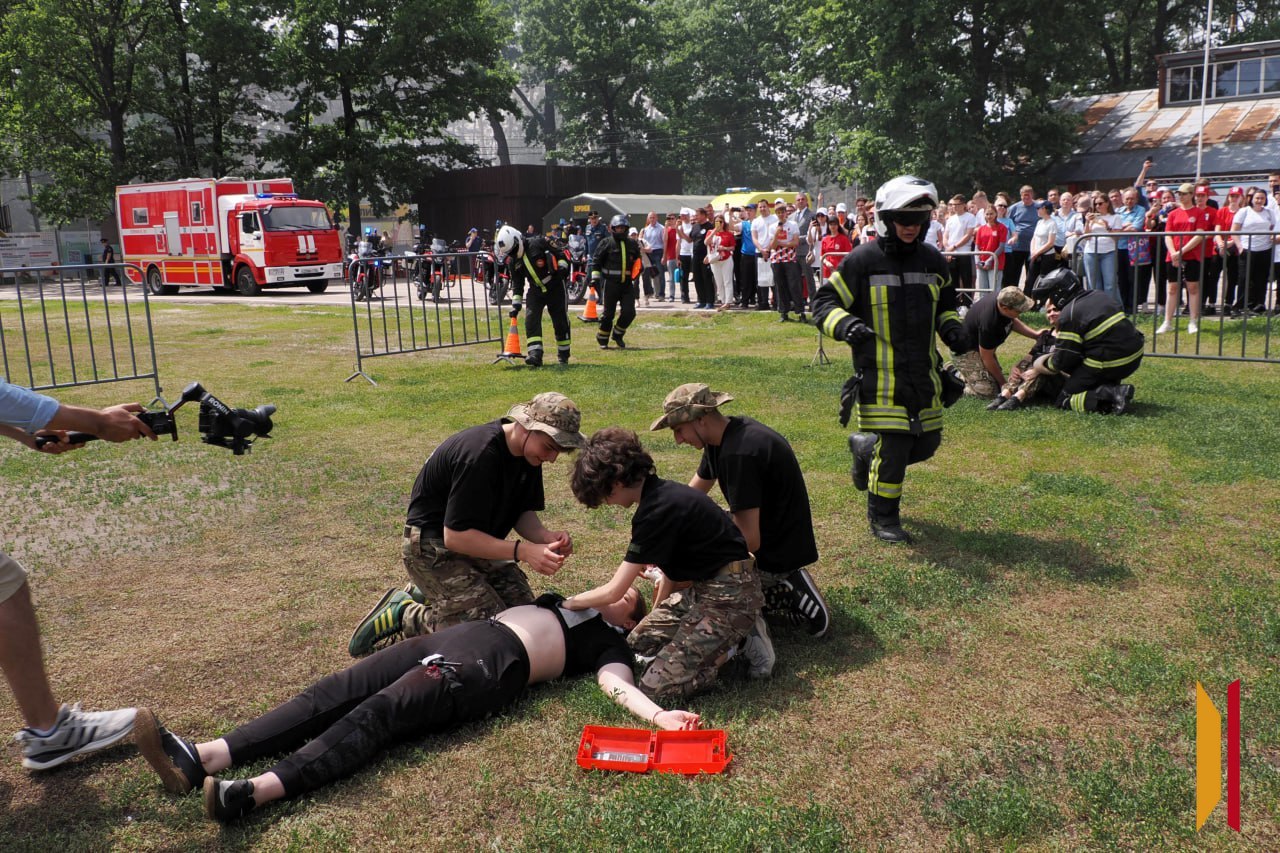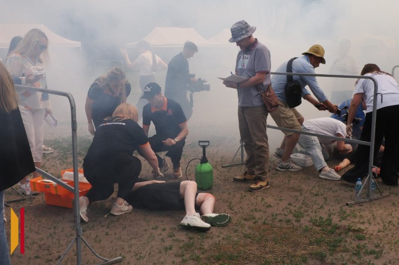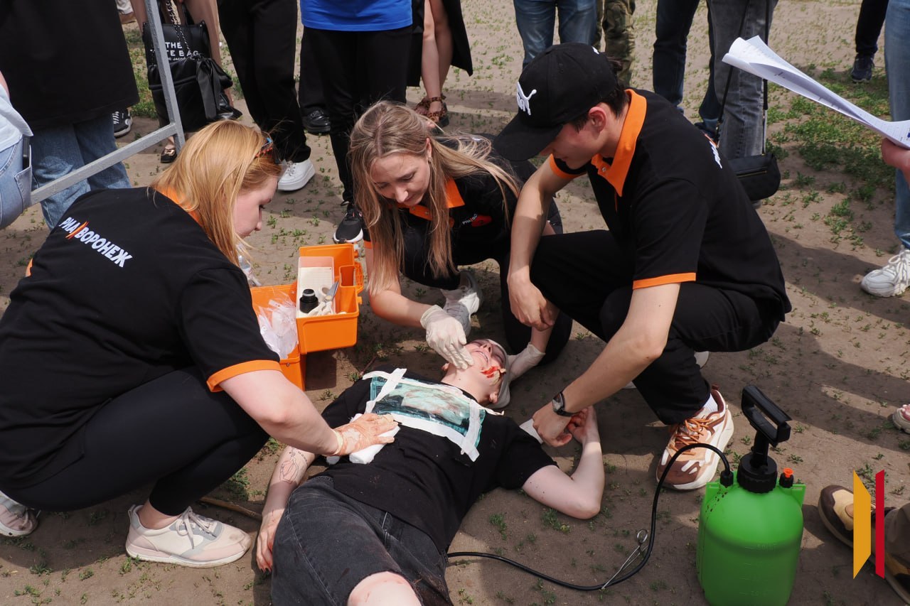Ситуацию повторили и для взрослых. По сценарию, после взрыва БПЛА у каждой команды осталось двое пострадавших: одному требовалась психологическая поддержка, у другого было множество ранений. На оказание помощи давалось десять минут.