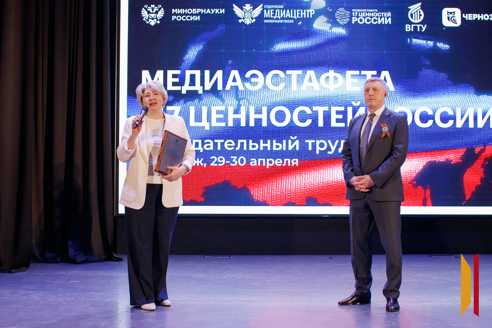 Медиаэстафета «17 ценностей России» (16+) проводится с 2021 года. Организатором студенческого проекта является Министерство науки и высшего образования РФ. Инициатива направлена на продвижение традиционных российских духовно-нравственных ценностей. В рамках проекта студенты российских городов на протяжении двух дней обсуждают одну из ценностей. Все творческие работы фиксируют в особом дневнике, который передают из города в город. В Воронеж дневник прибыл из соседнего Курска. Курские студенты работали над темой «Историческая память и преемственность поколений».