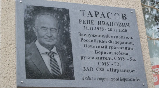 В Борисоглебске установили мемориальную доску заслуженному строителю РСФСР и почетному гражданину города Рене Тарасову. Торжественное открытие состоялось в пятницу, 9 сентября.