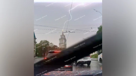 В Воронеже в воскресенье, 20 июля, в шпиль здания управления Юго-Восточной железной дороги (проспект Революции, 18) ударила молния. Шпиль со звездой находится на высоте около 70 м. Кадрами удара очевидцы поделились в социальных сетях.