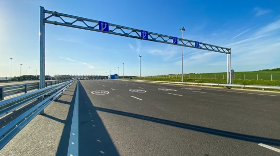 На дороге будут два пункта взимания платы. На одном из них – 16 полос оплаты проезда: шесть из которых будут работать в реверсивном режиме. Также предусмотрели бесконтактную оплату. На втором пункте – четыре полосы: по две в каждую сторону.