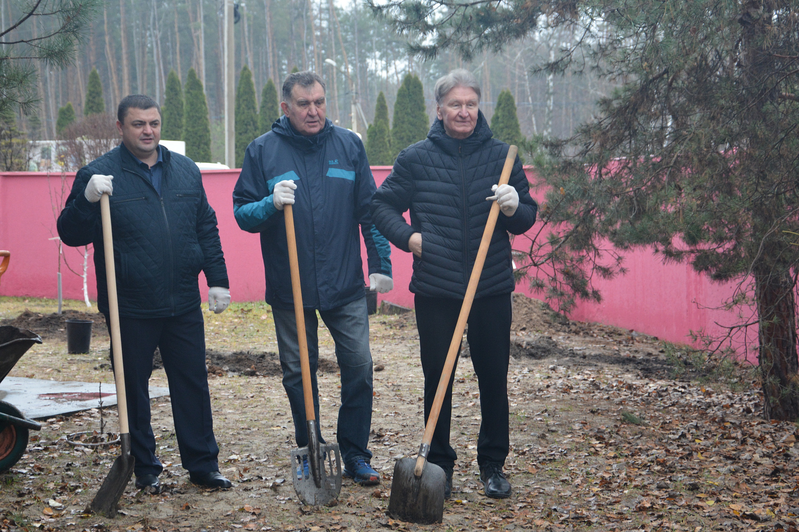 Под руководством председателя Воронежской городской думы Андрея Дьяченко депутаты городского парламента приняли участие в посадке молодых деревьев и кустарников возле храма Святого великомученика и целителя Пантелеимона в микрорайоне «Больница «Электроника».