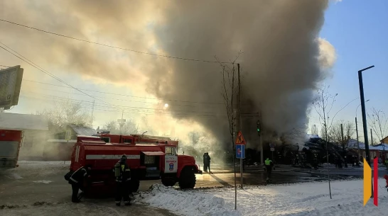 Сигнал о пожаре поступил на пульт дежурного в 14:42. Огнем охвачено около 150 кв. м площади. На месте работают десять пожарных расчетов. В 16:42 пожар был локализован.