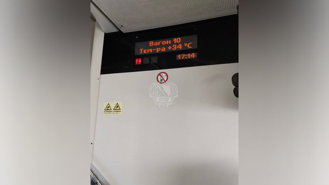 В пятницу, 11 июля, пассажиры двухэтажного поезда №738, курсирующего по маршруту Москва – Воронеж, пожаловались на жару. По словам граждан, в вагоне не работала система вентиляции. Температура воздуха составляла +34 градуса. Пассажиры сфотографировали табло и опубликовали фото в соцсетях.