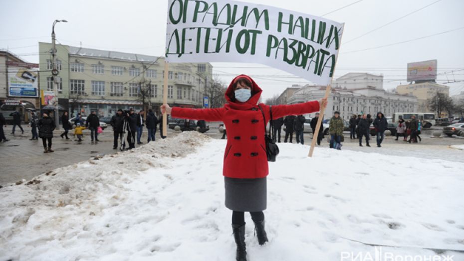 - За полчаса до пикета, в воскресный день, 64 информагентства сообщили о нем. Других тем что ли нет? Как будто кого-то били, машины сожгли... Посмотрите, сколько детей было на этом мероприятии. Разъясните, почему на плакате написано «Папа плюс мама, папа плюс папа». Кто за это должен отвечать? Сейчас закон не определяет ответственности за подобные вещи.
