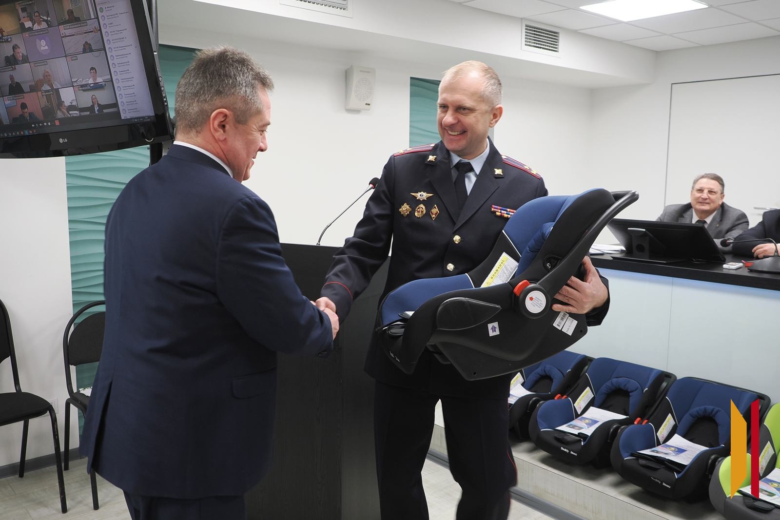 Несмотря на общую положительную динамику снижения числа погибших в ДТП на территории Воронежской области, сотрудники Госавтоинспекции отмечают негативную тенденцию: растет количество детей, которые становятся жертвами в дорожных авариях. Только в прошлом году на воронежских дорогах погибло 15 детей. Инспекторы ГАИ совместно с минздравом уже несколько лет реализуют проект «Детство без опасности». В его рамках, например, в роддома приглашают сотрудников Госавтоинспекции, которые проводят для молодых мам практические тренинги по использованию детских удерживающих устройств. В преддверии нового 2026 года проект решил поддержать крупный агрегатор такси в Воронеже, передав для проведения тренингов детские автолюльки. В торжественной обстановке в среду, 21 января, этот подарок представителям медучреждений вручил начальник воронежской Госавтоинспекции Евгений Шаталов.