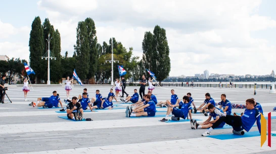 В среду, 6 августа, футболисты «Факела» провели открытую разминку для всех желающих на Адмиралтейской площади. Спортсмены показали зрителям упражнения, с которых начинаются их собственные тренировки: суставная разминка, растяжка, МФР (раскатка на миофасциальном ролике). Событие посетили корреспонденты РИА «Воронеж».
