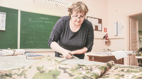 – Крою на два размера: 48−52 и 52−56. Сначала я кроила и шила сама, сейчас успеваю только кроить. Женщины, которые шьют, очень ждут раскроенные комплекты. Каждую деталь – вытачки, шнуры, резинки – подписываю, затем нумерую. Производство практически безотходное. Все остатки ткани используются для плетения маскировочных сетей. Надеемся, что вещи, сшитые нашими руками, помогут мужчинам в боевых условиях и сохранят им жизни, – добавила Валентина Шевцова.