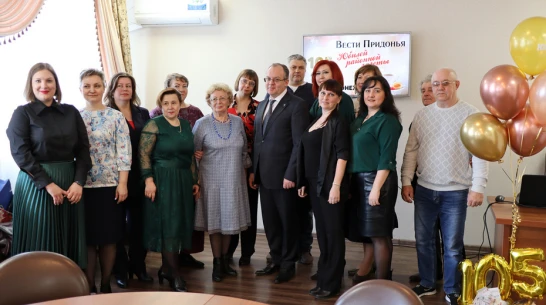 Издание с юбилеем также поздравила начальник отдела выпуска районных СМИ РИА «Воронеж» Ольга Кощеева. Она вручила главному редактору газеты «Вести Придонья» Татьяне Мендак и сотрудникам редакции грамоты, подписанные директором медиахолдинга РИА «Воронеж» Натальей Филь.