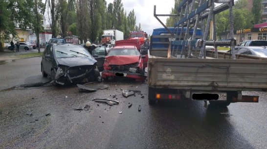 В Воронеже 68-летний мужчина и 22-летняя девушка пострадали в массовом ДТП на улице Новосибирской, сообщили в пресс-службе регионального ГУ МВД. Авария произошла в 13:40 среды, 20 мая. Фотографии с места ДТП появились в группе «Аварии | ДТП | Воронежа» соцсети «ВКонтакте».