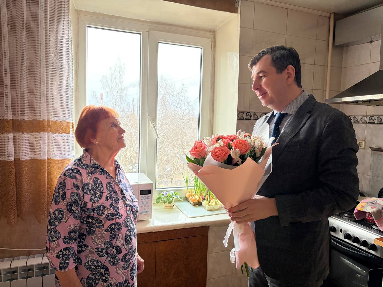 Также первый заместитель председателя правительства передал Тамаре Агибаловой поздравления от губернатора Александра Гусева.