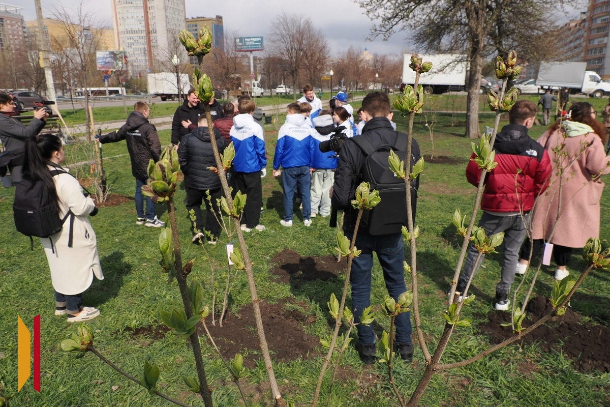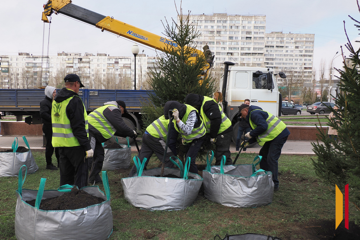 Мемориальный комплекс «Памятник Славы» в качестве участка работ был выбран неслучайно: в преддверии 80-летия Великой Победы там были высажены молодые ели в сквере «Ратный» и 80 кустов сирени на Аллее Славы.